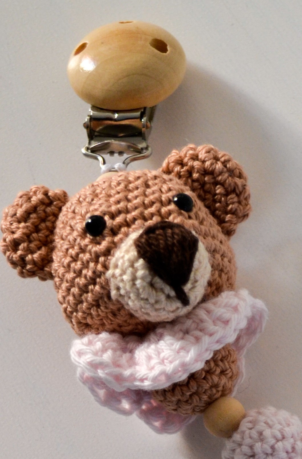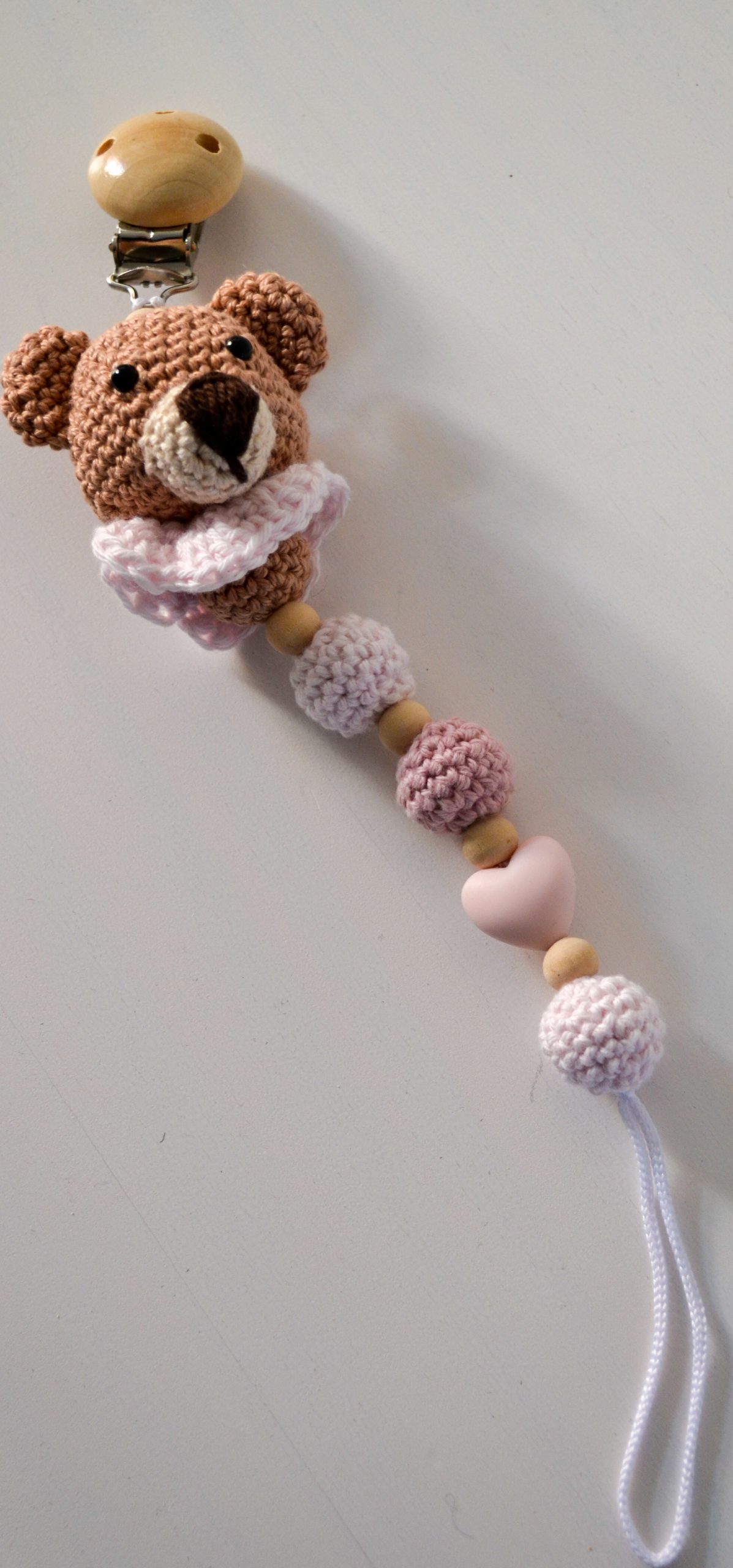gehäkelte Schnullerkette Bär